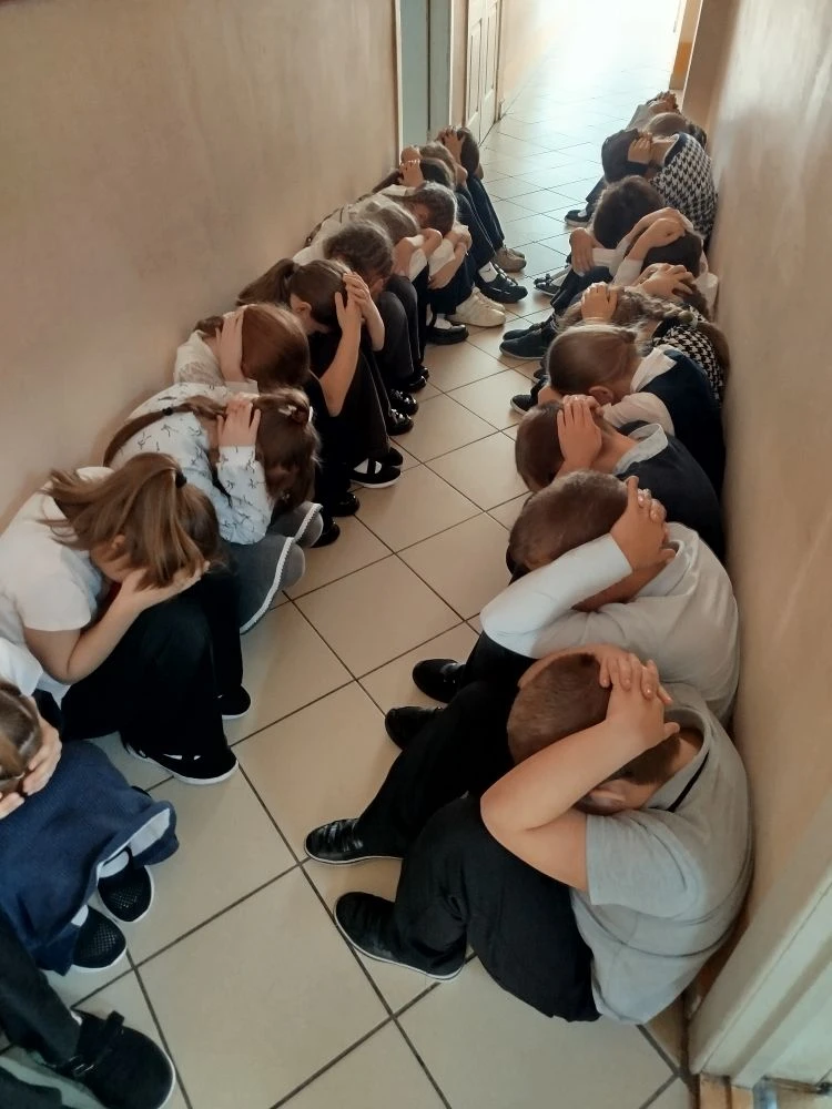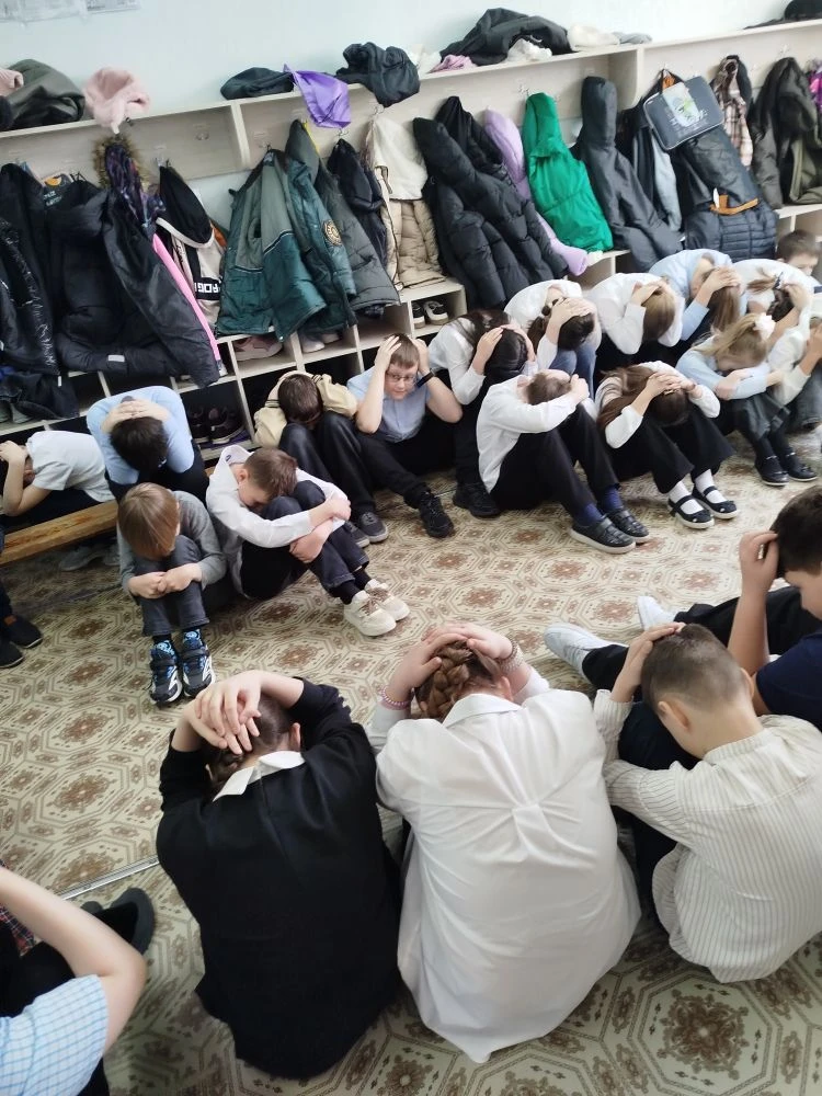 В качестве укрытий были использованы коридоры внутренних помещений (без окон), коридоры первого этажа. Учителя еще раз напомнили ученикам главное правило: при ракетной опасности нельзя находиться у окон, необходимо занять положение «сидя на полу» или «лежа», используя стены и перегородки как естественную защиту.