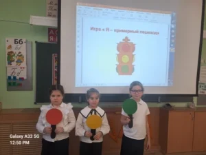 В заключении первоклассники поиграли в игру «Я – примерный пешеход!» и изготовили модели светофоров.