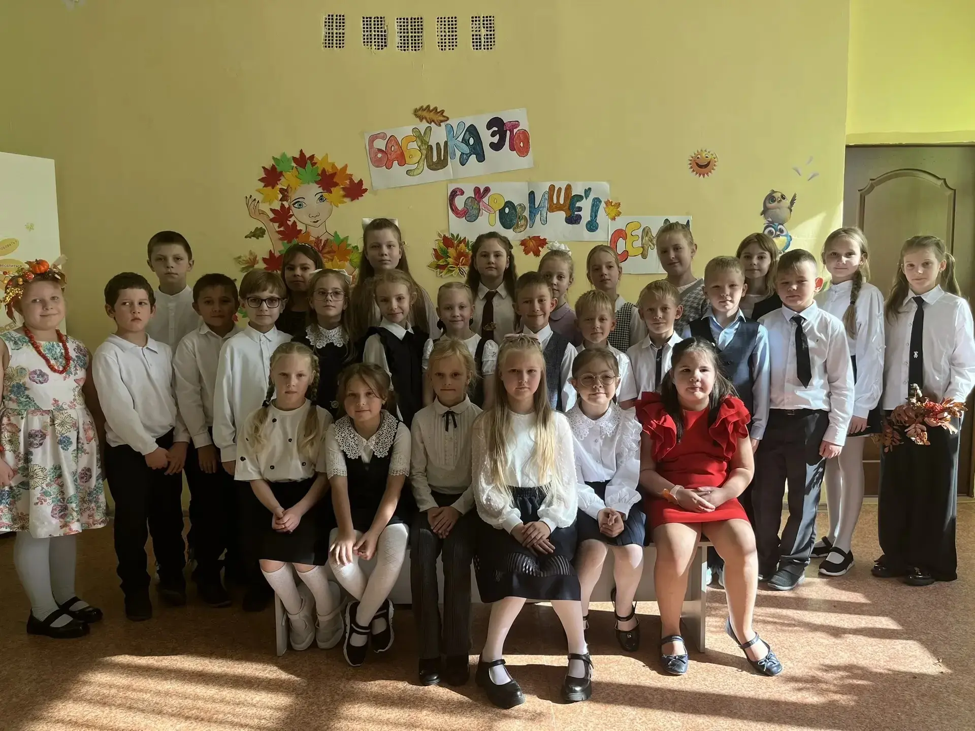 К этому дню дети готовились целый месяц, и это был месяц приятных хлопот и секретов! На уроках труда с большим старанием мастерили подарочных матрёшек. Каждый хотел, чтобы его матрешка была самой красивой. Приготовили фотовыставку «Бабушка и внуки»