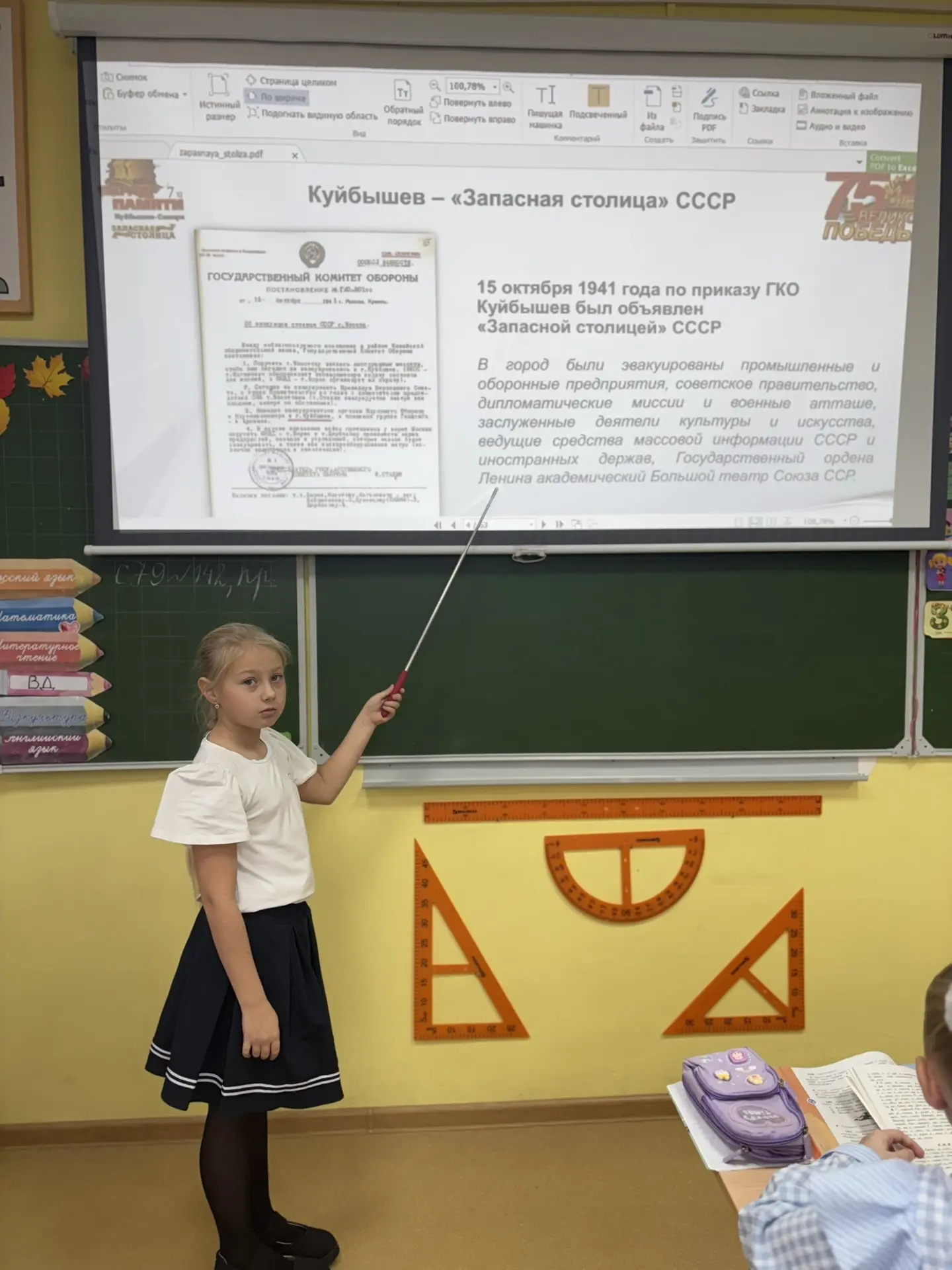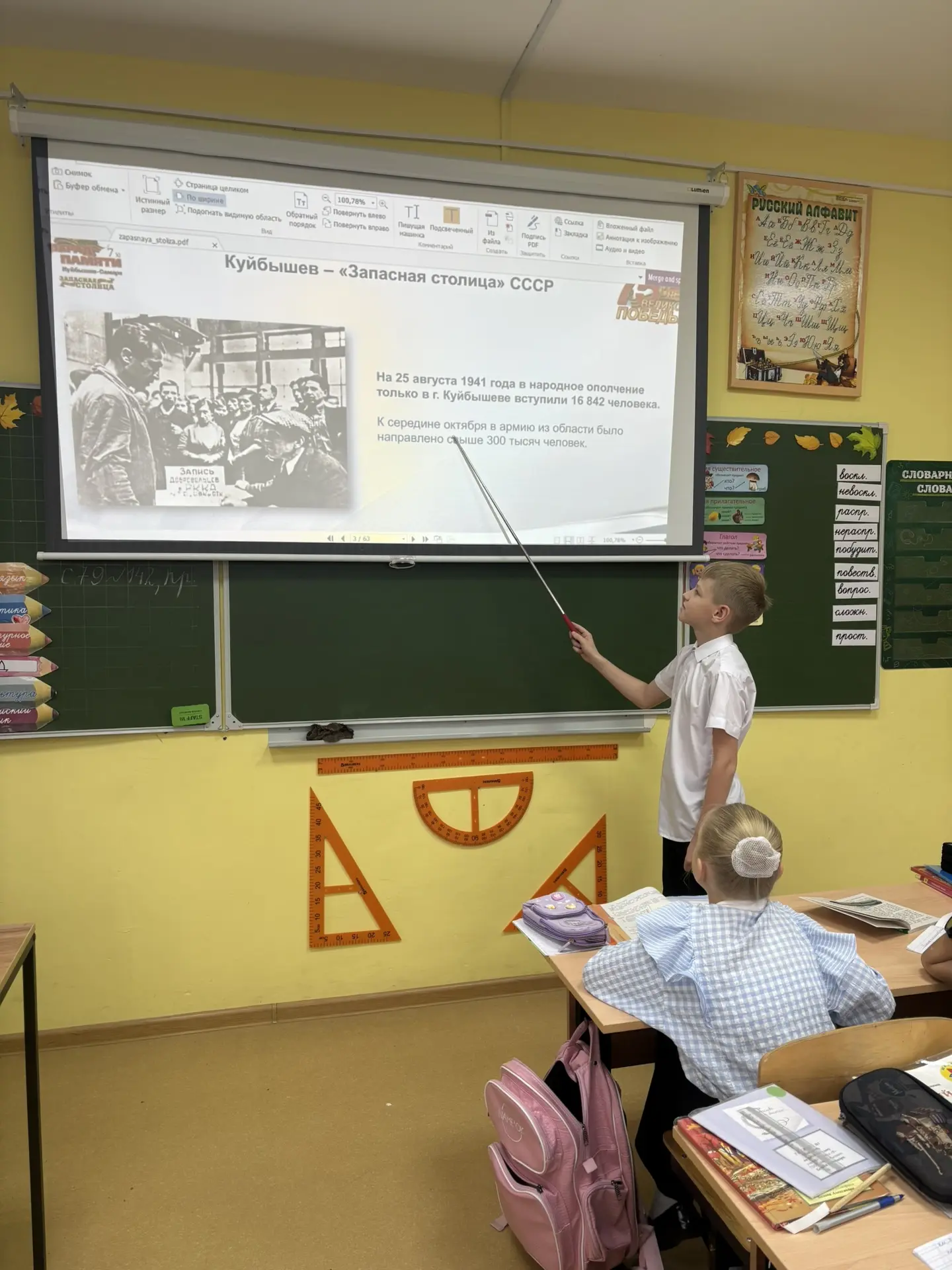 13 октября состоялся урок памяти, посвященный исторической роли Куйбышева как запасной столицы в 1941 году. Ученики 3-х классов познакомились с историей знаменитого Парада 7 ноября, который стал символом несломленного духа нашего народа в годы войны. Классный час стал важным напоминанием о героическом прошлом нашей малой Родины.