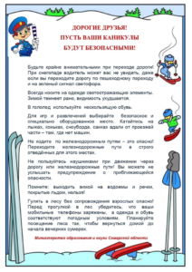 удлиняется тормозной путь. Выбирайте безопасное место для игр и развлечений.